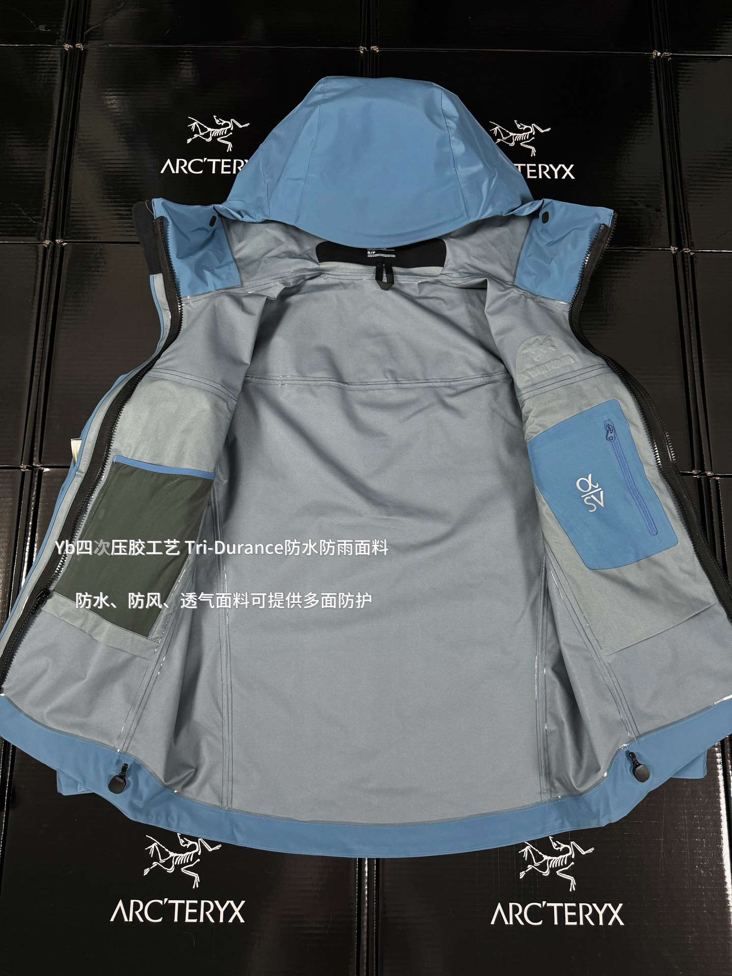 Yb four time glue pressing process, 3D biomimetic design for the entire garment, long arm bend, Tri Defense waterproof and rainproof fabric
