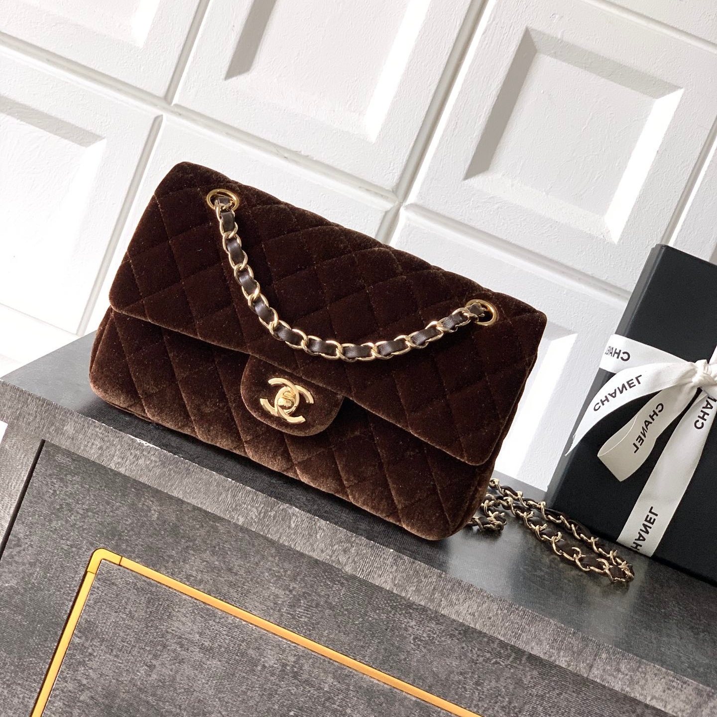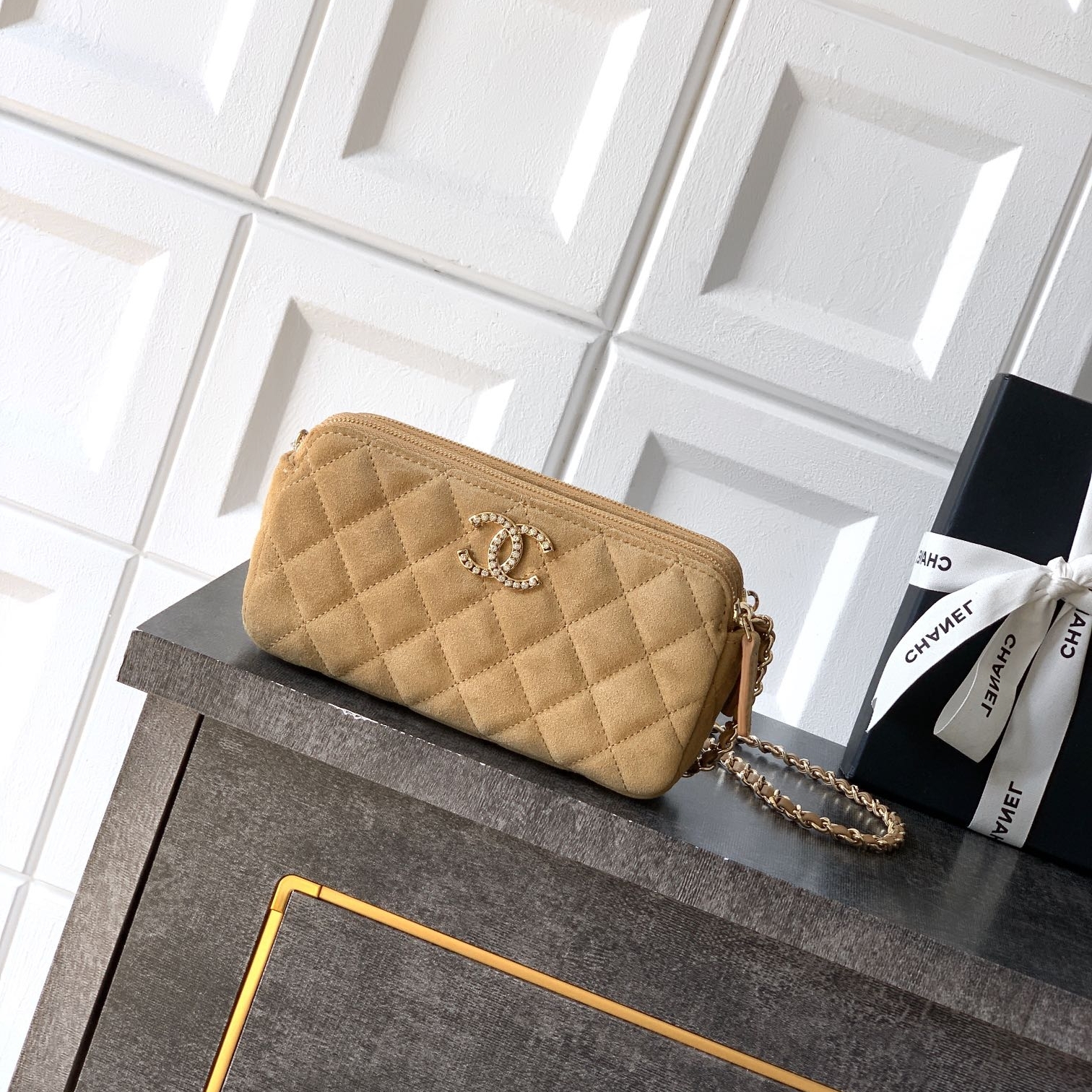 Chanel 25k Rhinestone chain bag Brown coffee color
