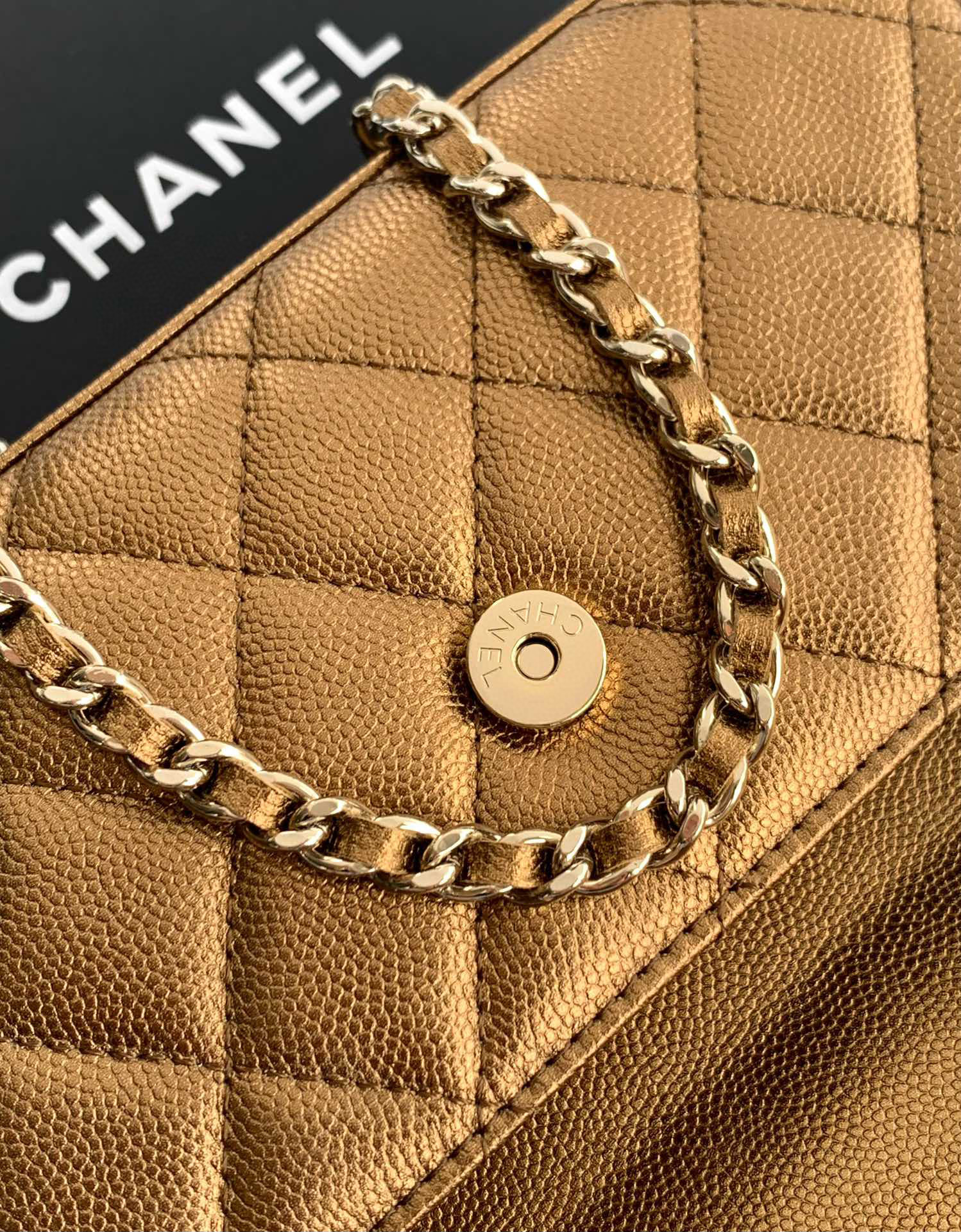 Chanel 25s Cross Handle Kelly Leather Horizontal Edition Large Bronze Gold