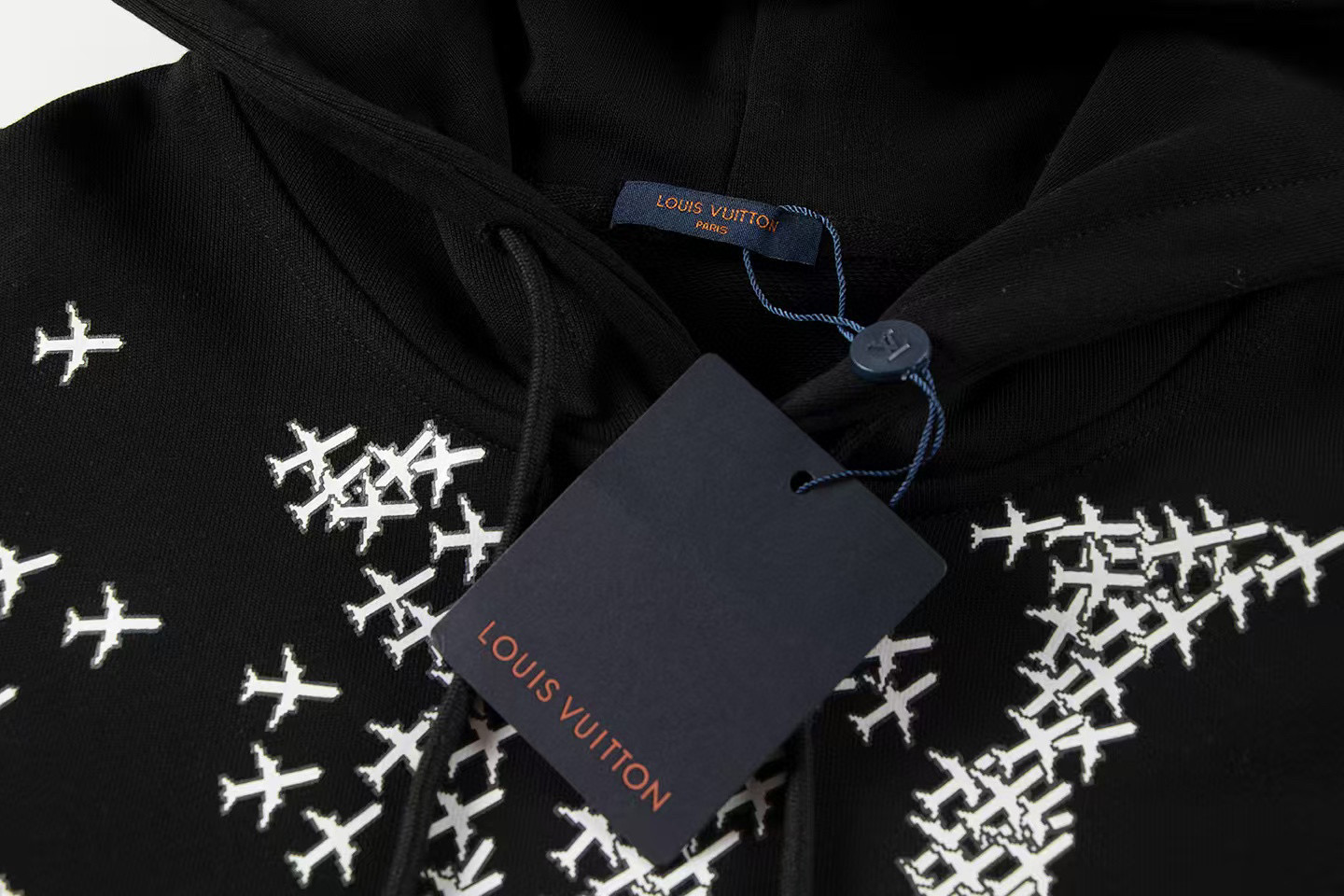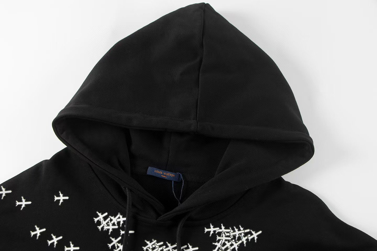Louis Vuitton Classic airplane print logo hood Hoodie Black
