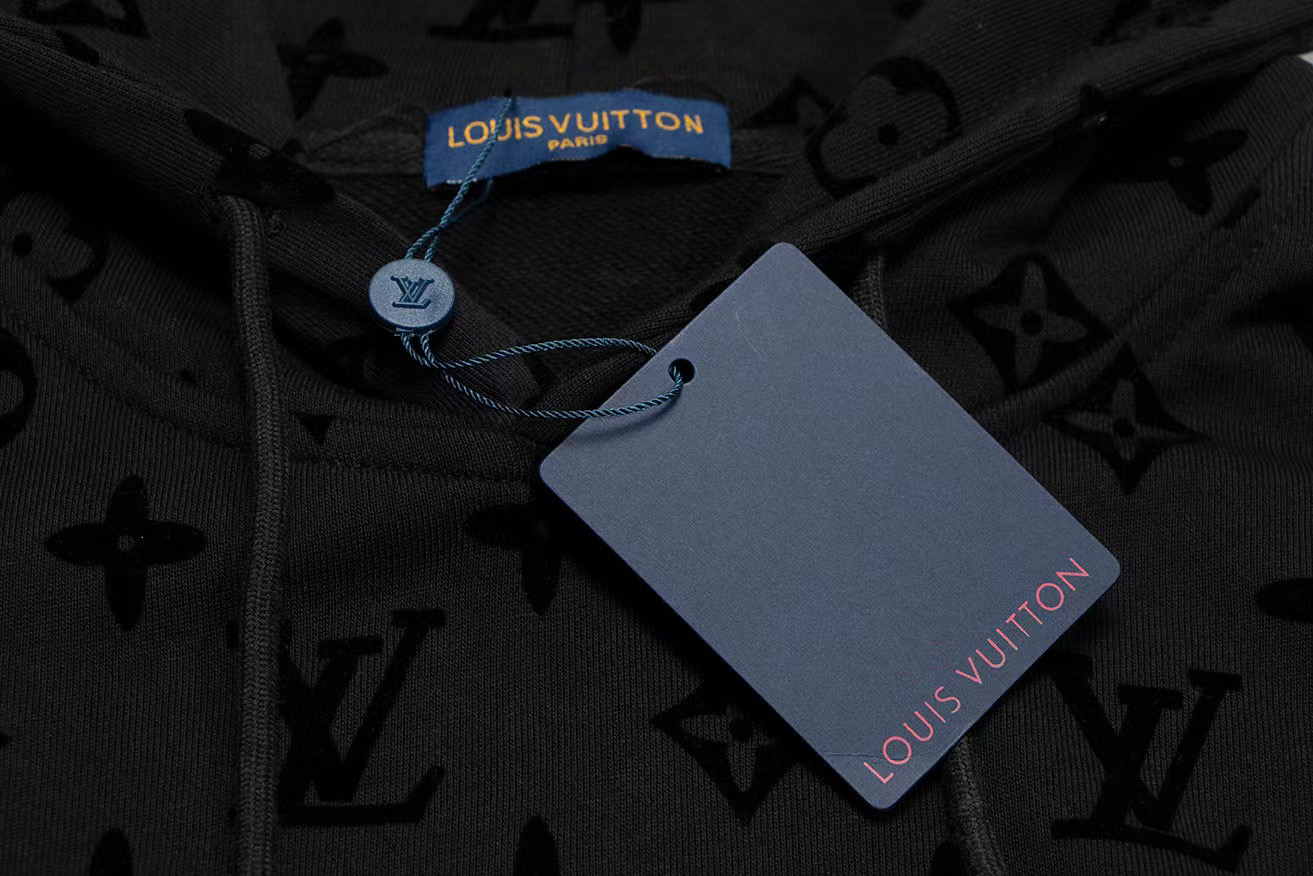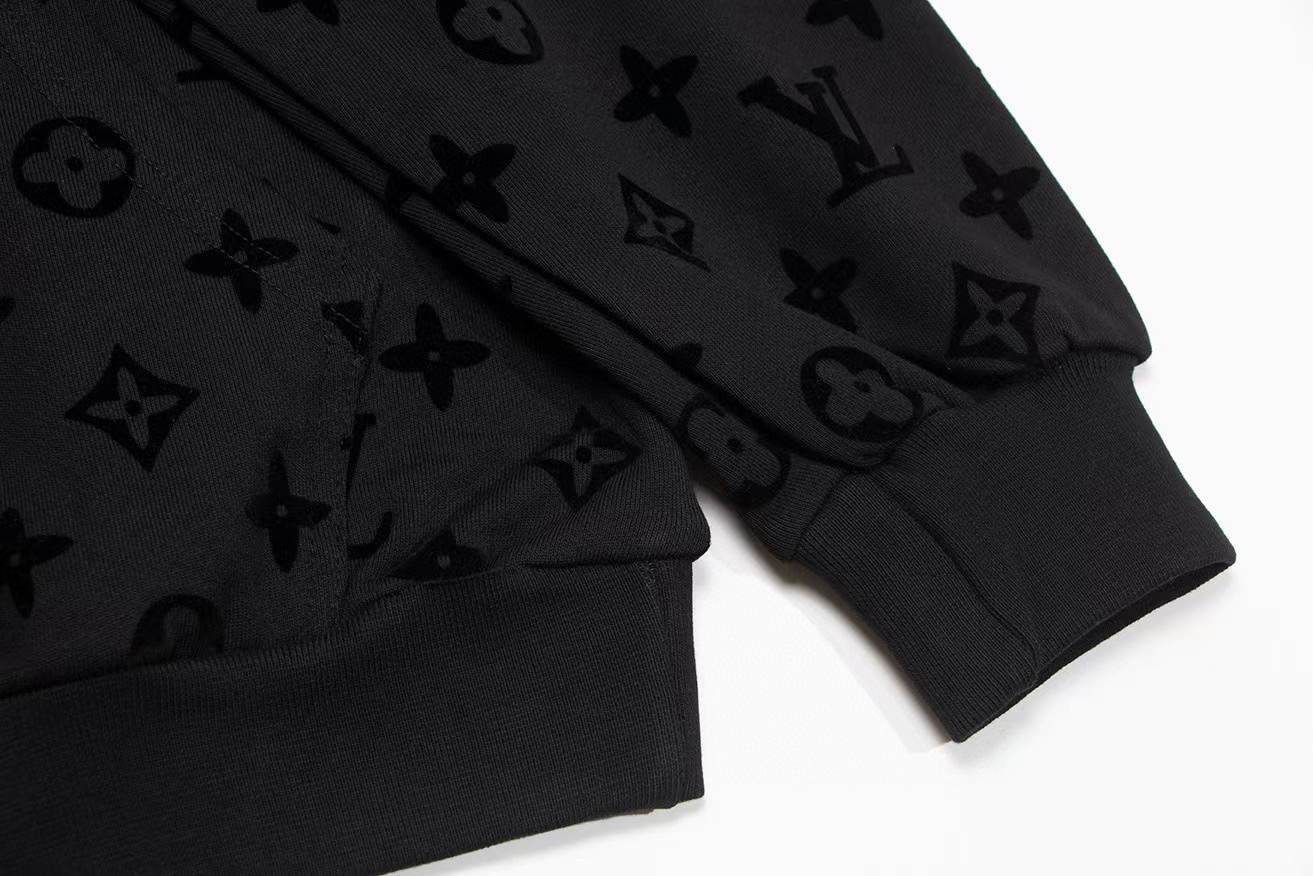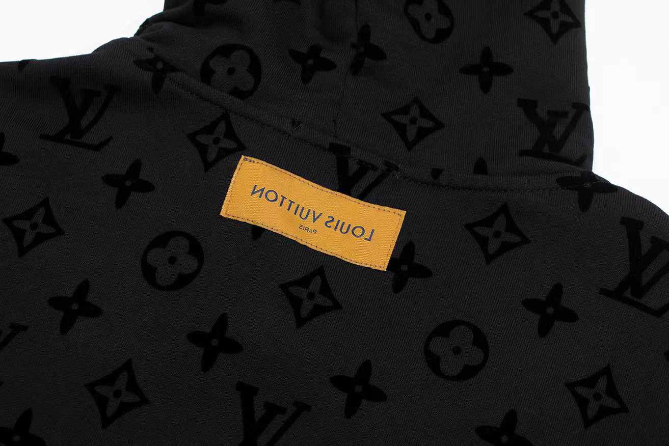 Louis Vuitton Classic letter full printed plush logo hood Hoodie Black