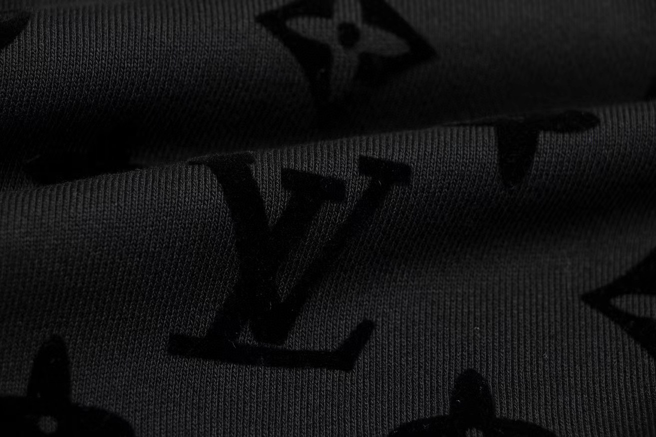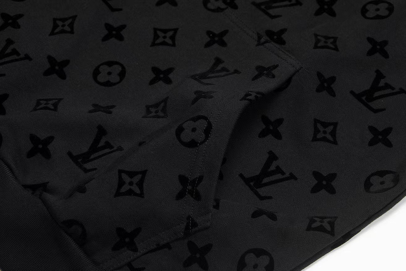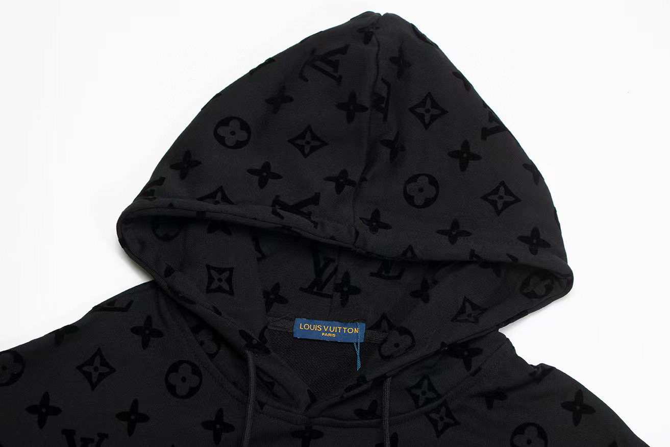 Louis Vuitton Classic letter full printed plush logo hood Hoodie Black