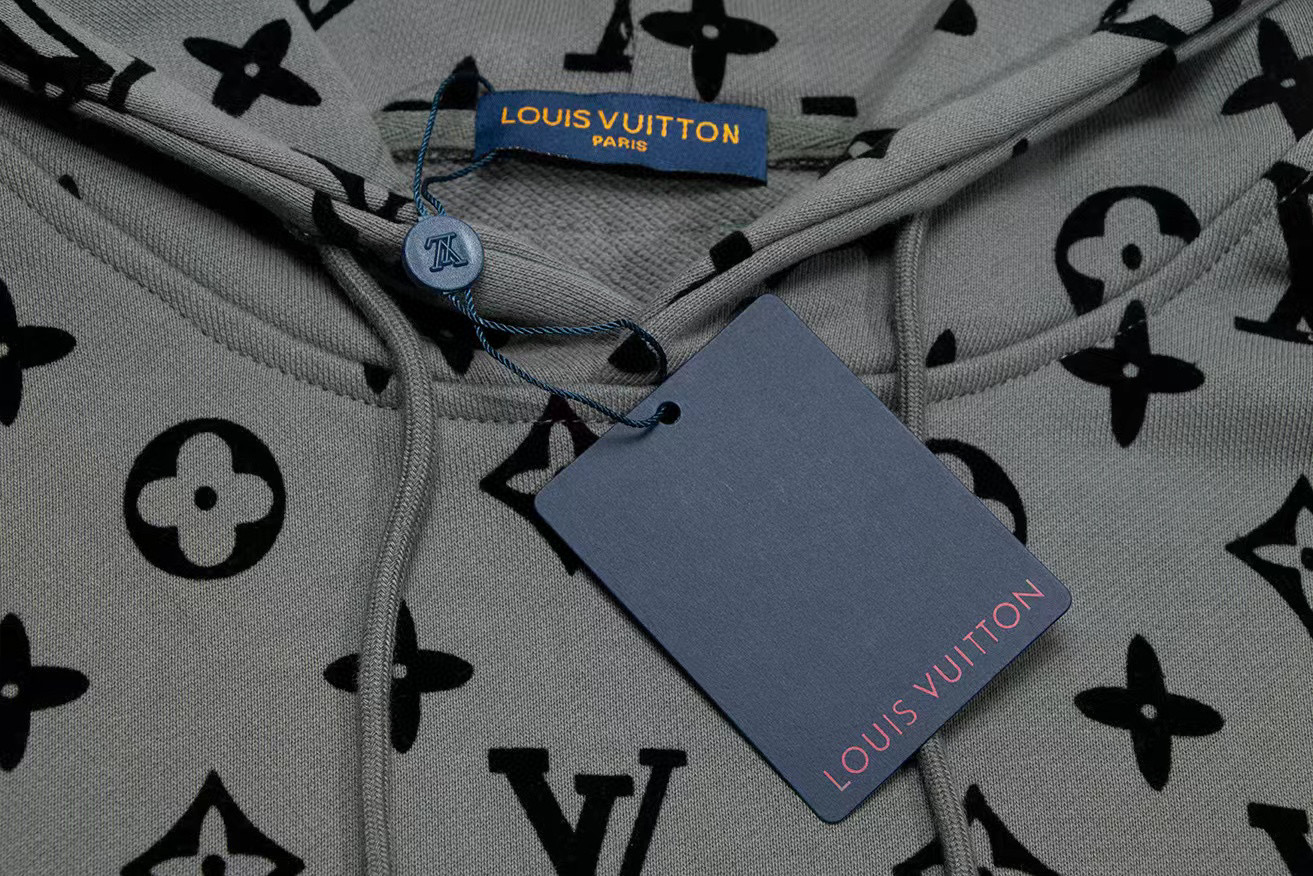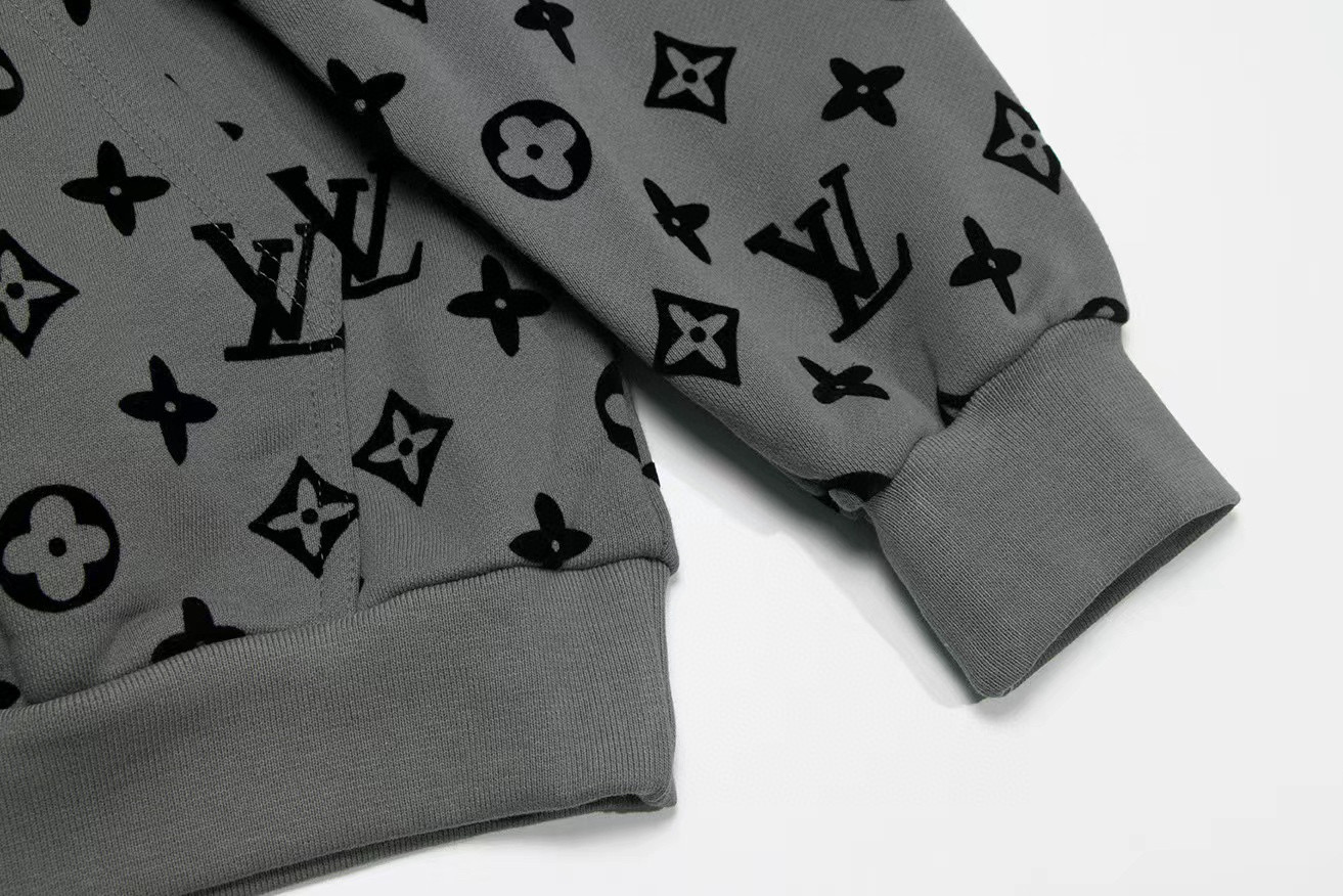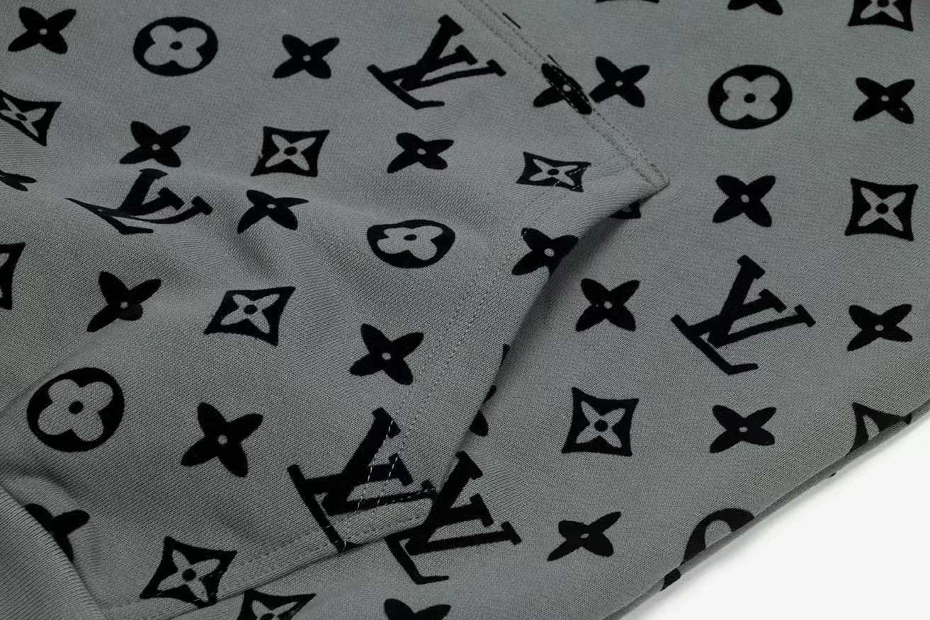 Louis Vuitton Classic letter full printed plush logo hood Hoodie Grey
