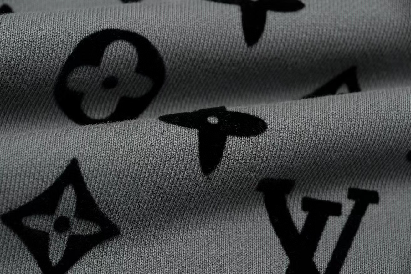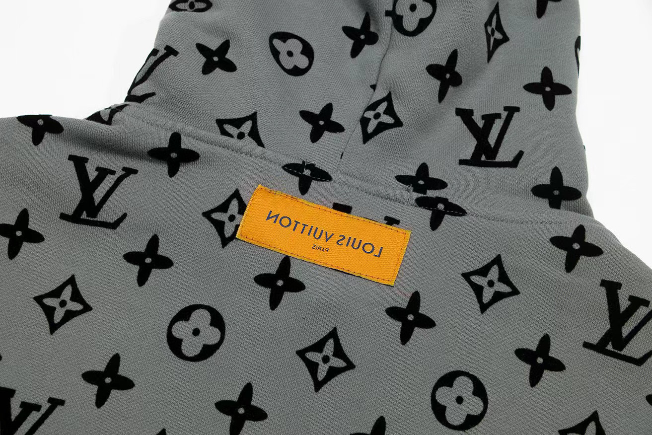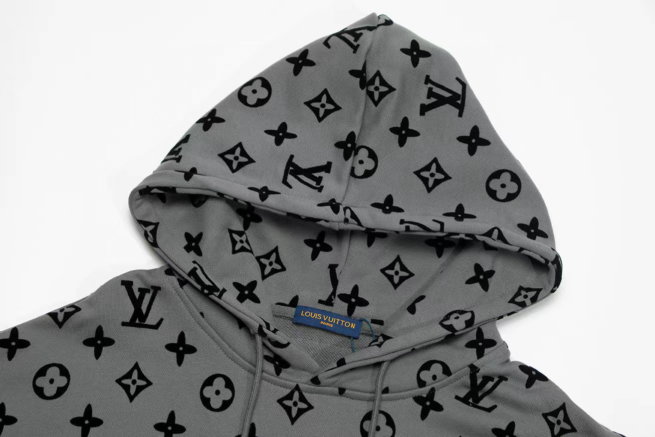 Louis Vuitton Classic letter full printed plush logo hood Hoodie Grey