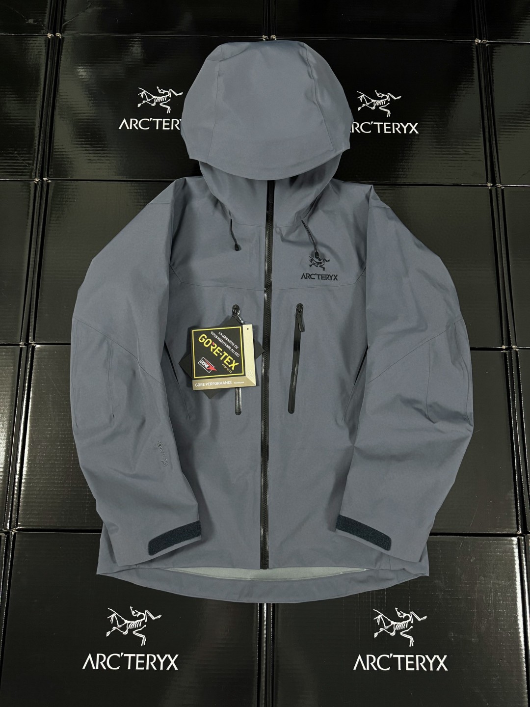 GORE-TEX 3.0 fabric embroidered logo pattern, underarm opening design ensures fast heat dissipation without serious overheating, flowing point hat brim is silky smooth to avoid rain and block the line of sight, and the opening cable design is convenient for teammates to quickly solve the problem of retrieval under extreme conditions. The zippered hand pocket has a large capacity to store personal items, and can be easily accessed even with heavy gloves. The windproof hem can prevent heavy snow from entering.