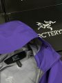 Traditional organ cross reverse access high mountain pocket set at a high position, VISLON central front zipper, adjustable Velcro cuff Velcro label, compatible with Zip in, with ARC TERYX logo embroidered on the chest using a Patel machine