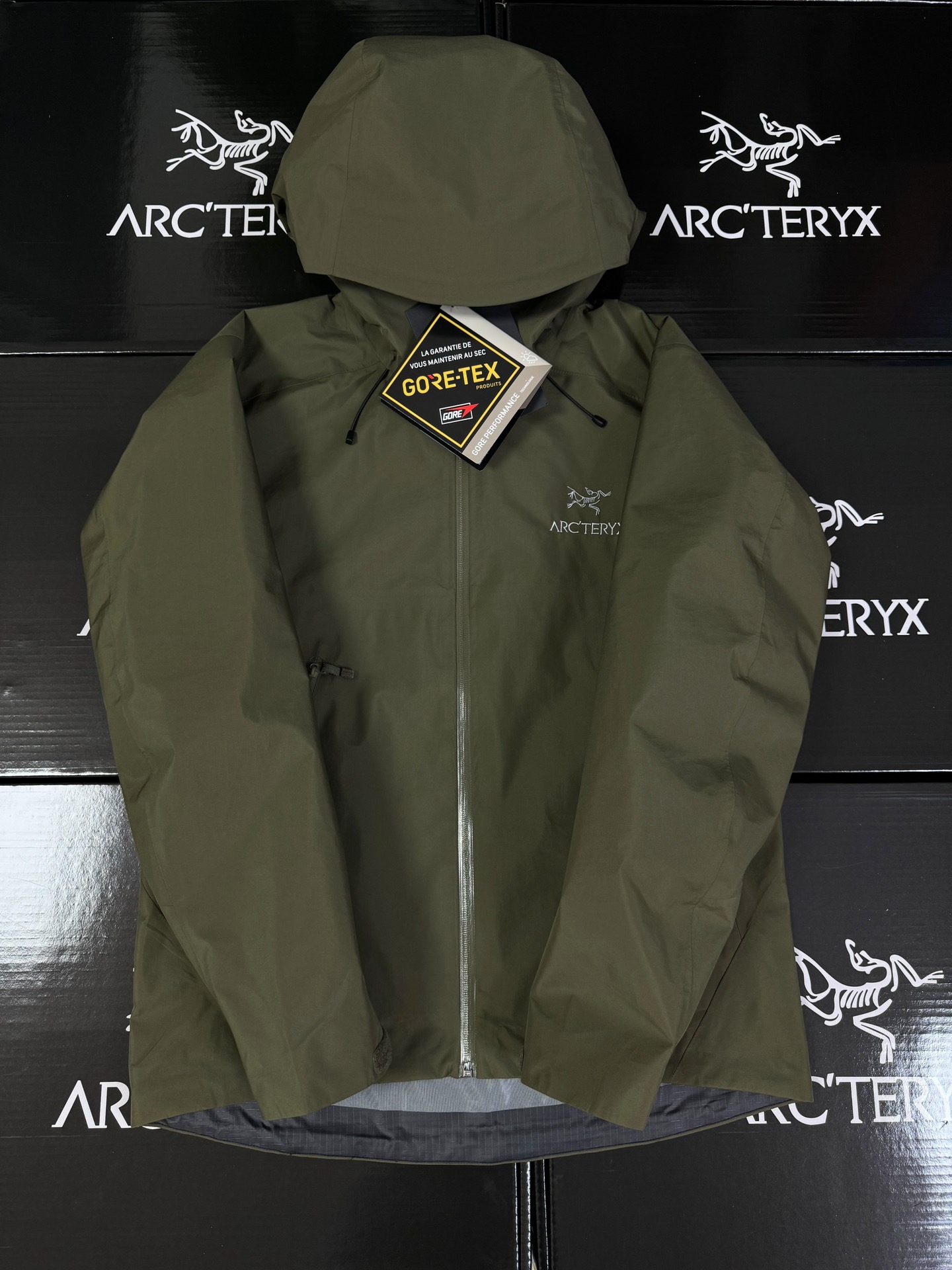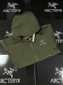 Traditional organ cross reverse access high mountain pocket set at a high position, VISLON central front zipper, adjustable Velcro cuff Velcro label, compatible with Zip in, with ARC TERYX logo embroidered on the chest using a Patel machine