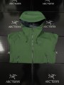 Traditional organ cross reverse access high mountain pocket set at a high position, VISLON central front zipper, adjustable Velcro cuff Velcro label, compatible with Zip in, with ARC TERYX logo embroidered on the chest using a Patel machine