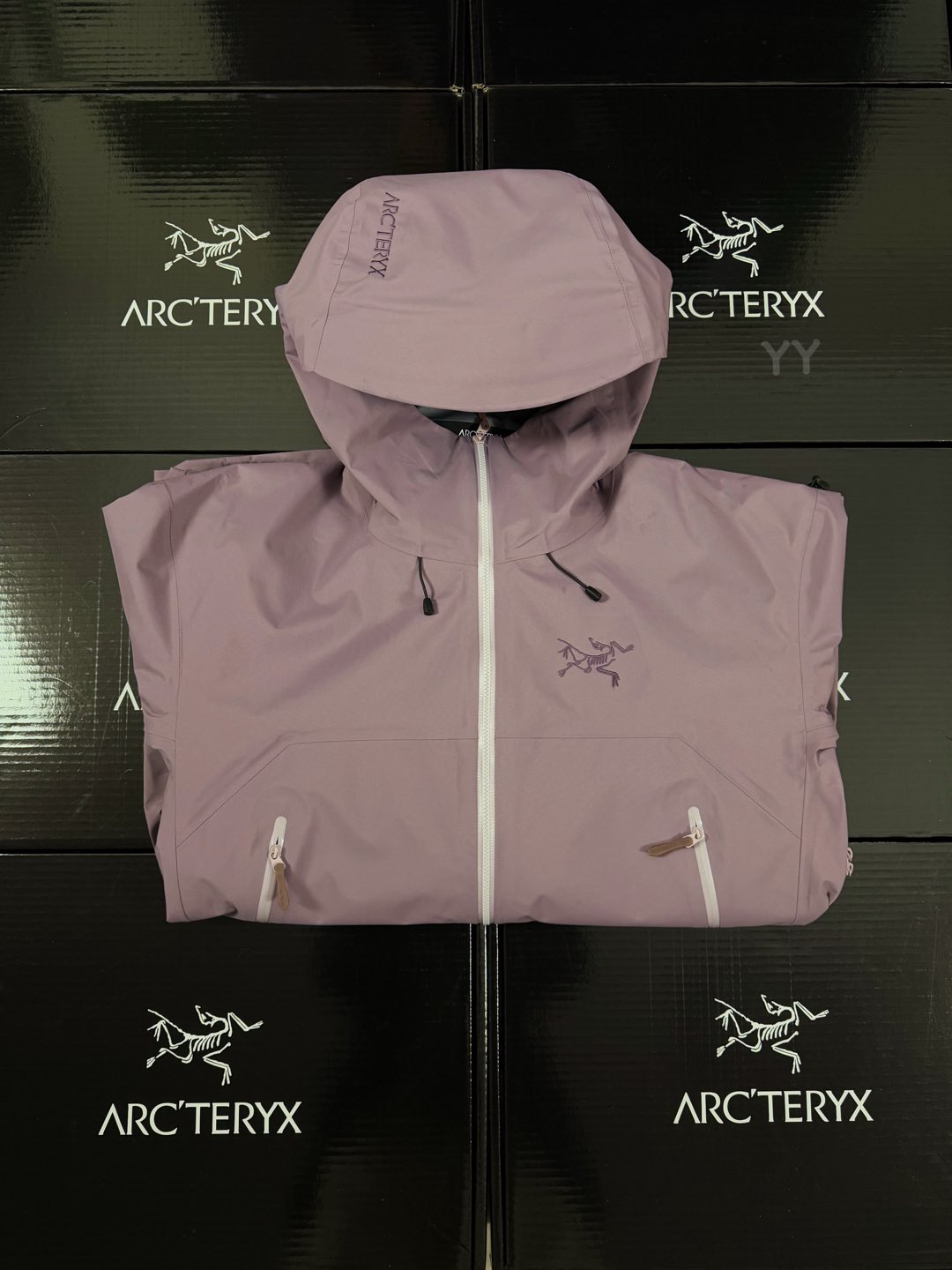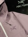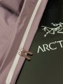 Traditional organ cross reverse access high mountain pocket set at a high position, VISLON central front zipper, adjustable Velcro cuff Velcro label, compatible with Zip in, with ARC TERYX logo embroidered on the chest using a Patel machine