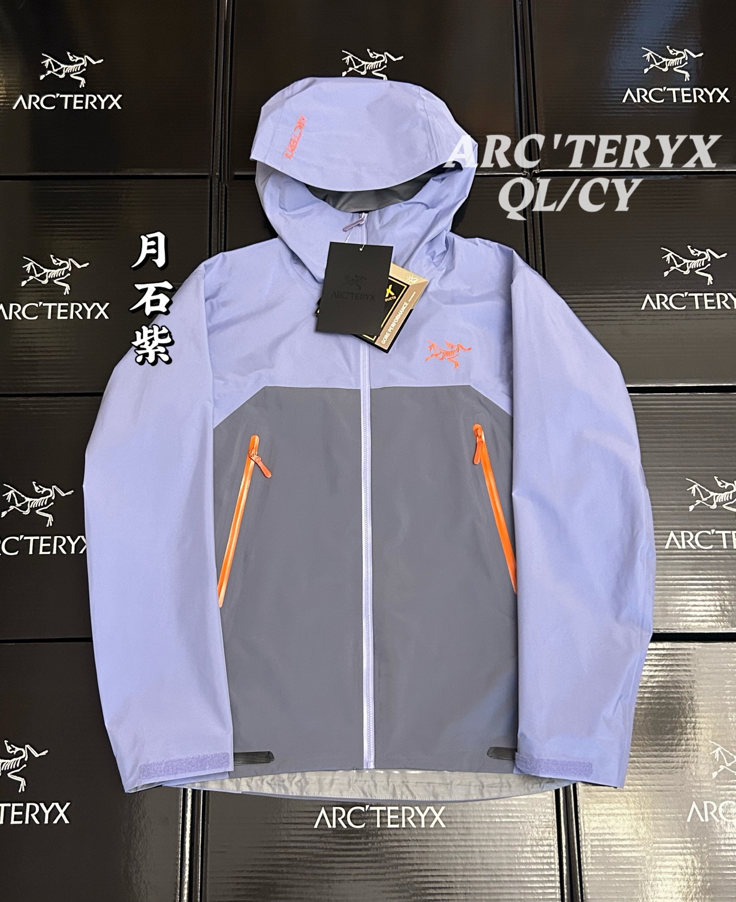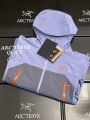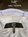 Traditional organ cross reverse access high mountain pocket set at a high position, VISLON central front zipper, adjustable Velcro cuff Velcro label, compatible with Zip in, with ARC TERYX logo embroidered on the chest using a Patel machine