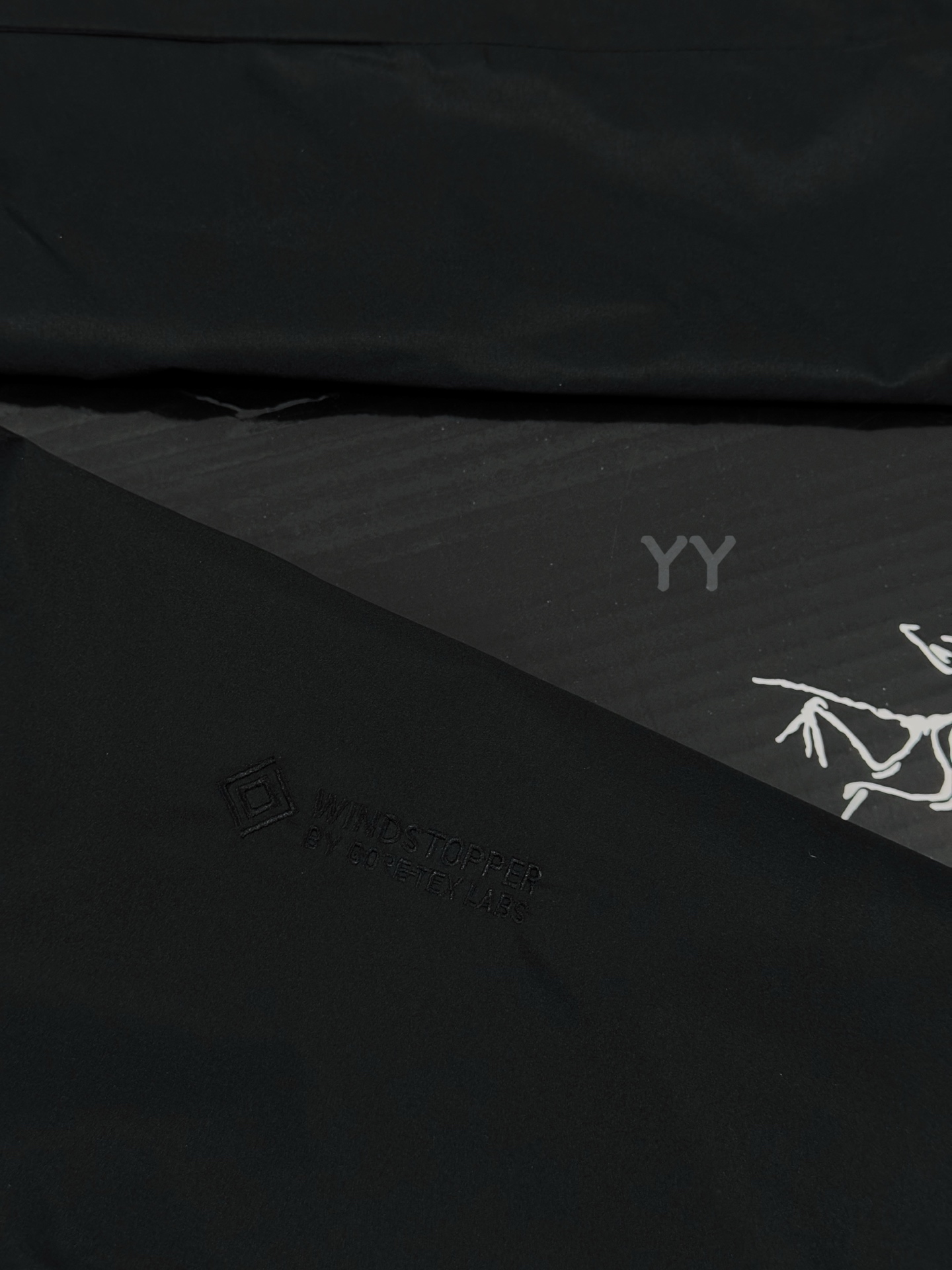Embroidered all over the garment, custom logo zipper details fully pulled up
