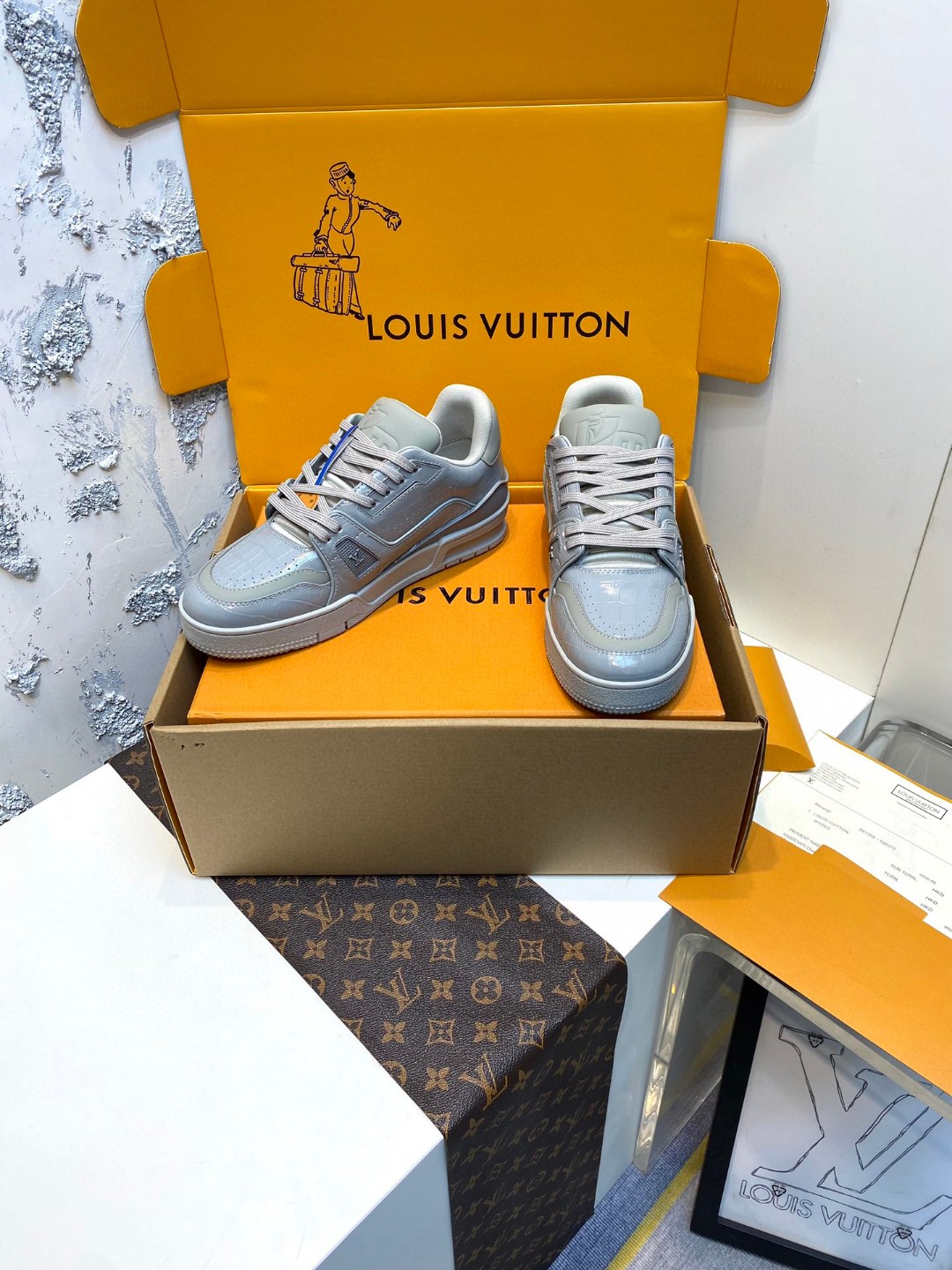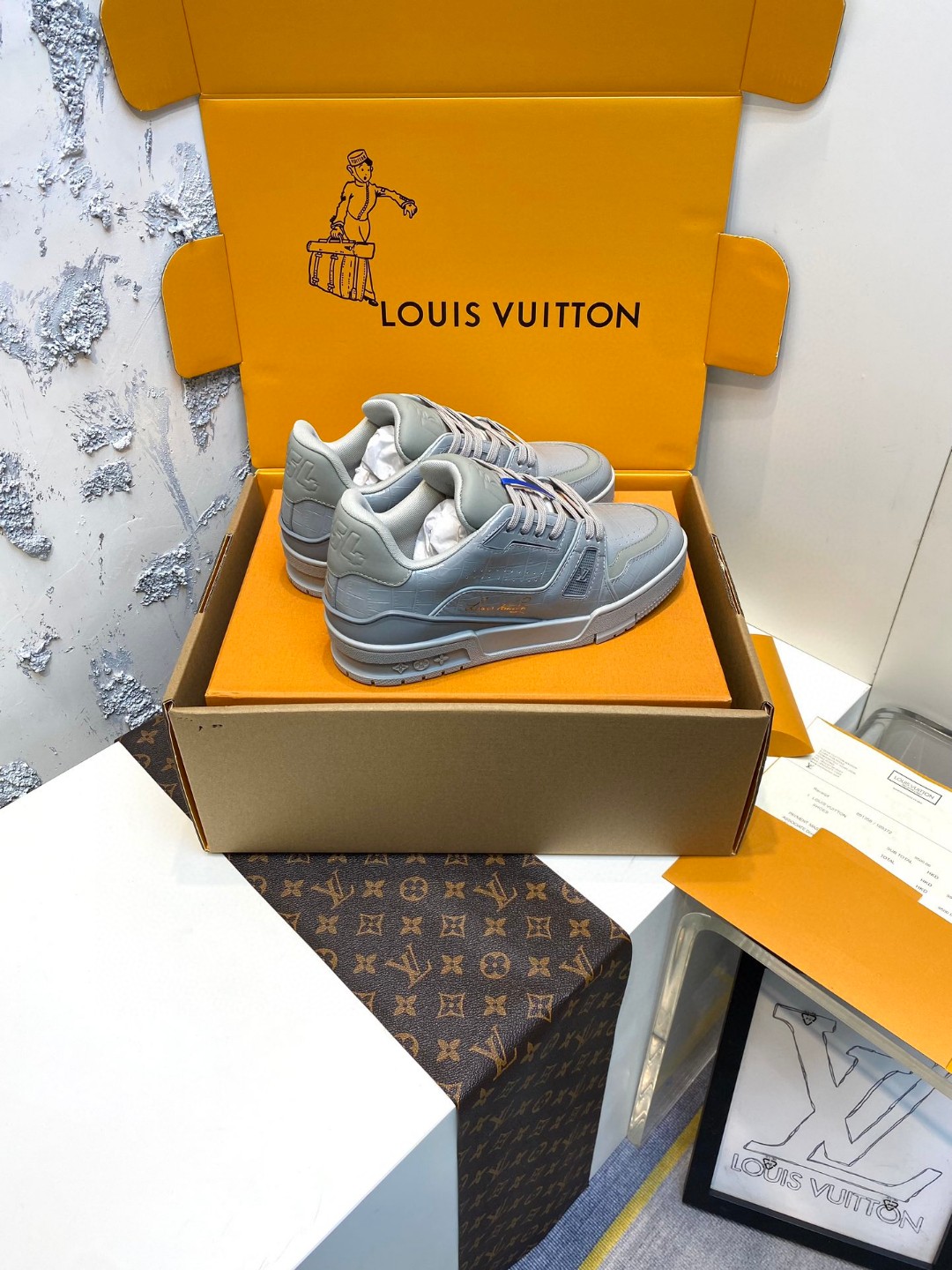Louis Vuitton X Tyler Trainer crocodile patterned sneakers grey