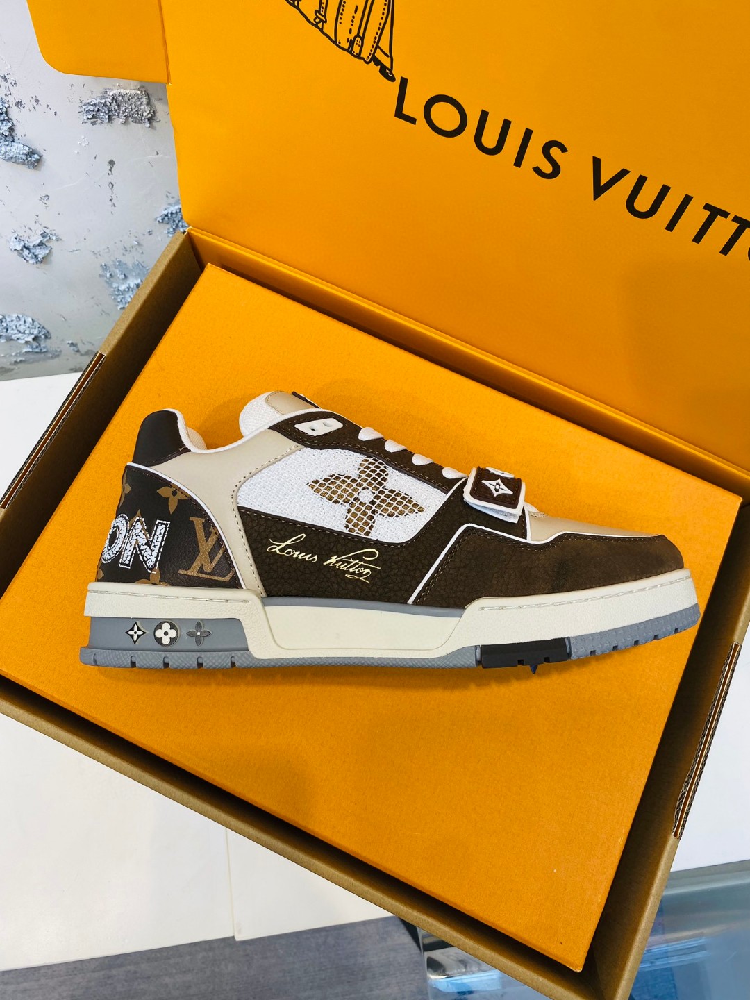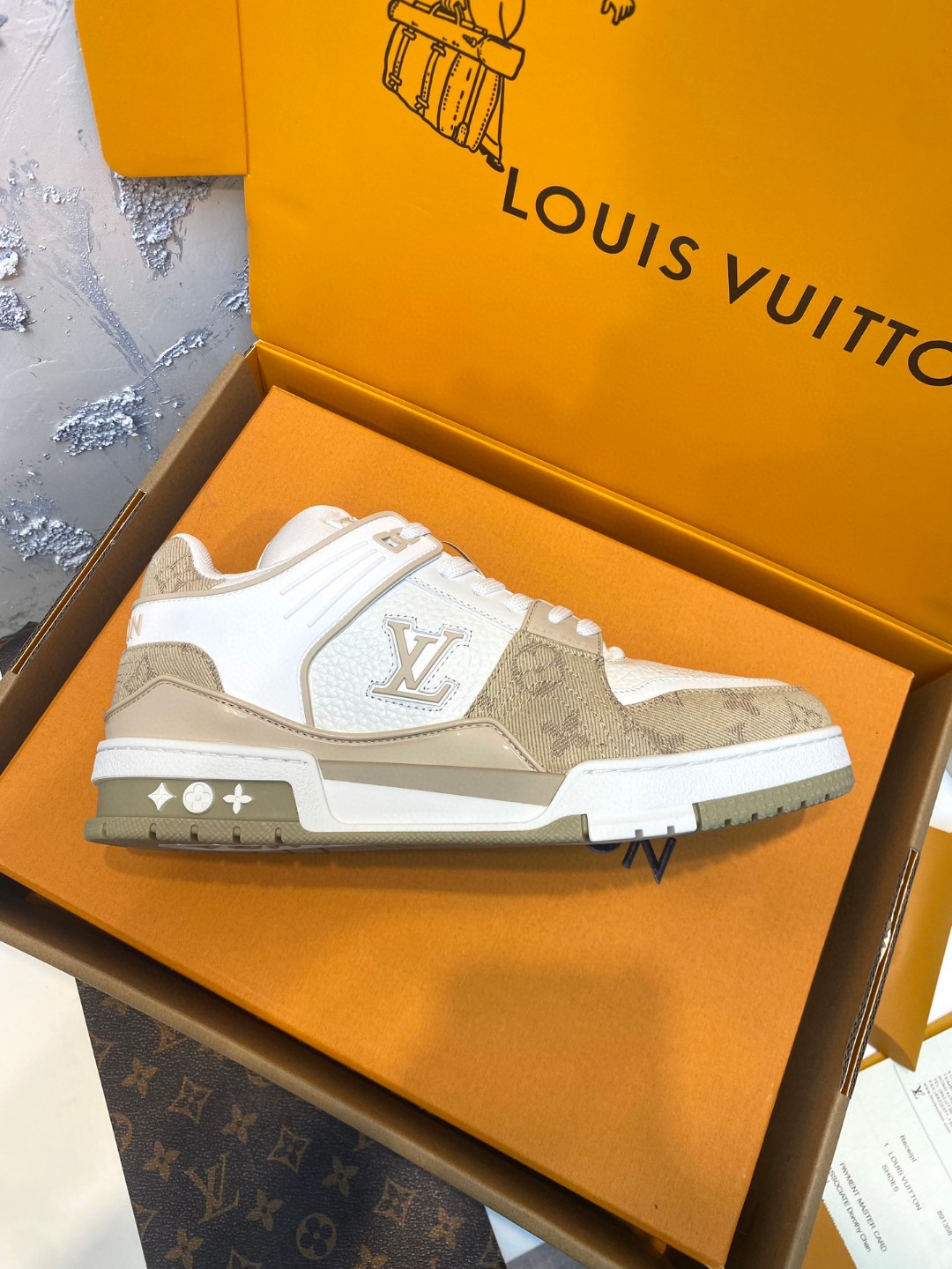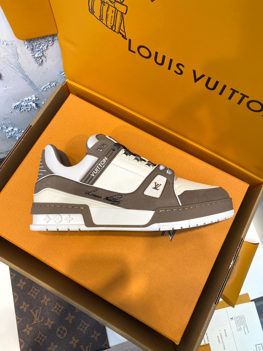 Louis Vuitton Trainer Sneakers Special Edition white brown