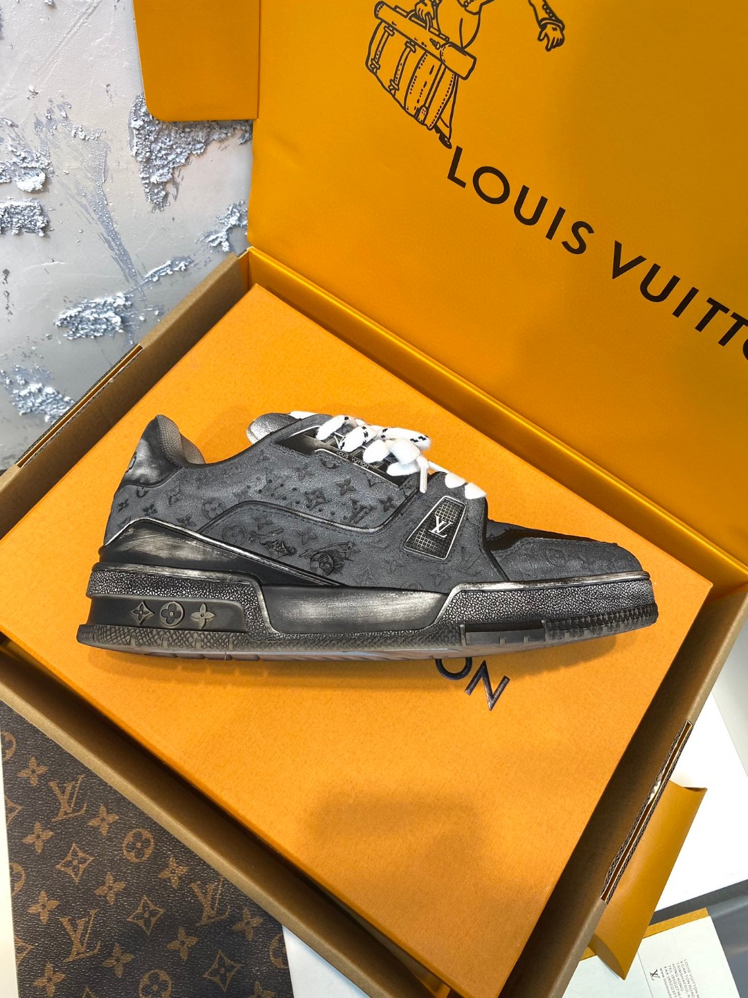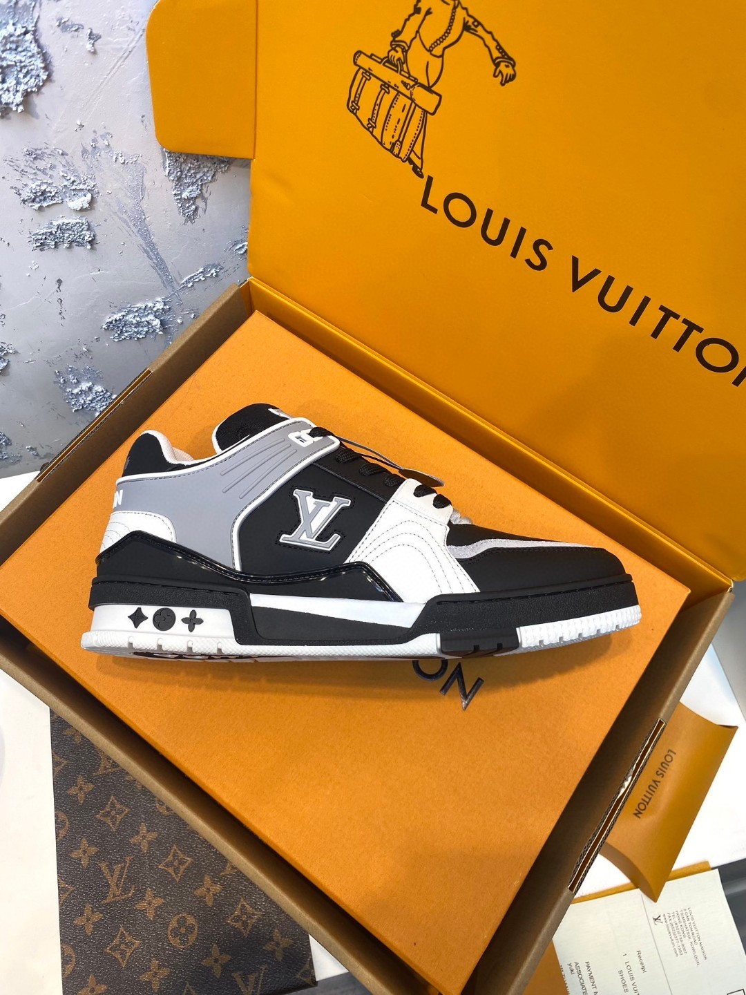 Louis Vuitton Trainer Sneakers Special Edition black white grey