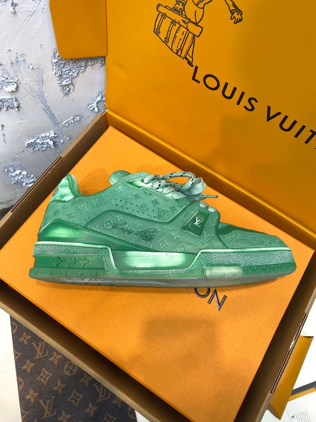 Louis Vuitton Trainer Sneakers Leather Collection green