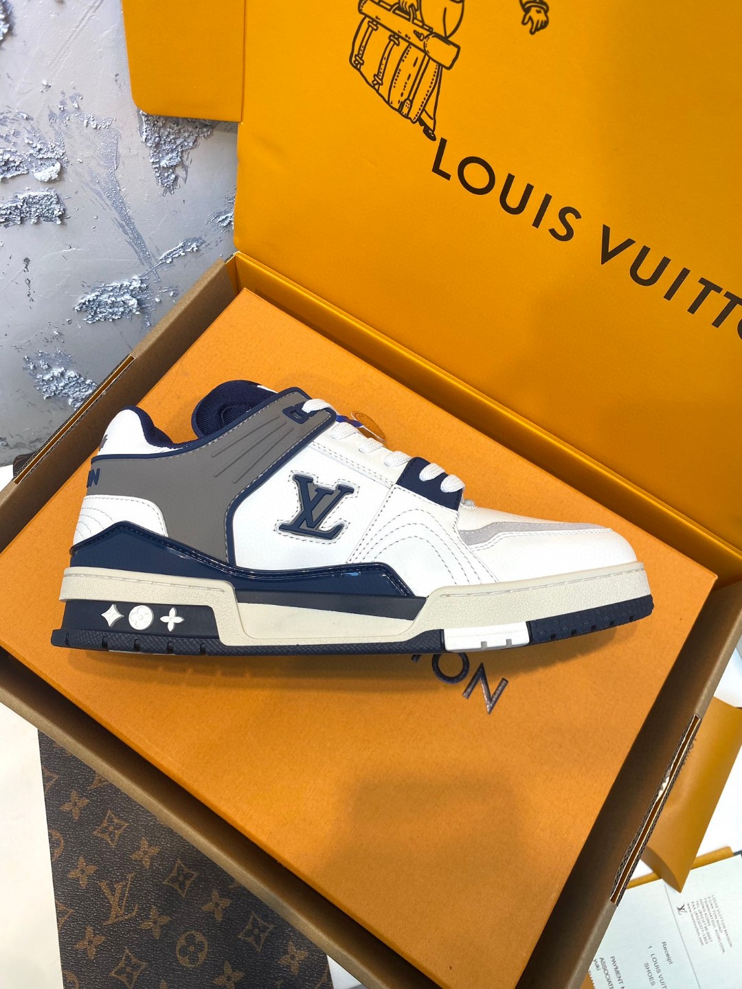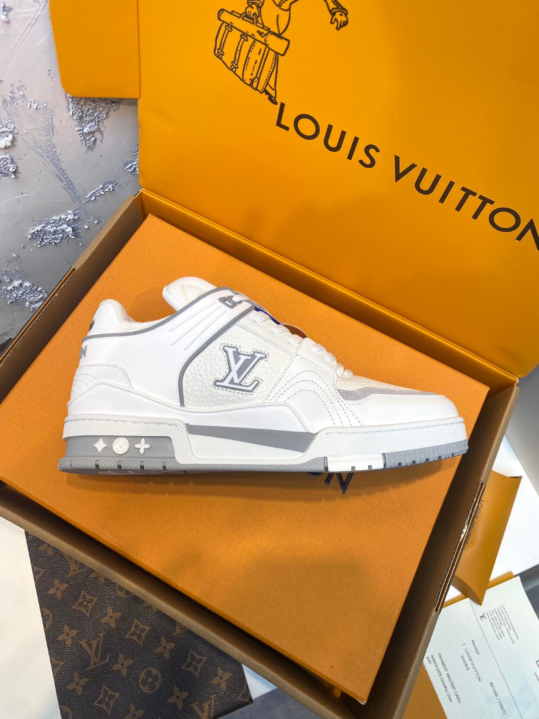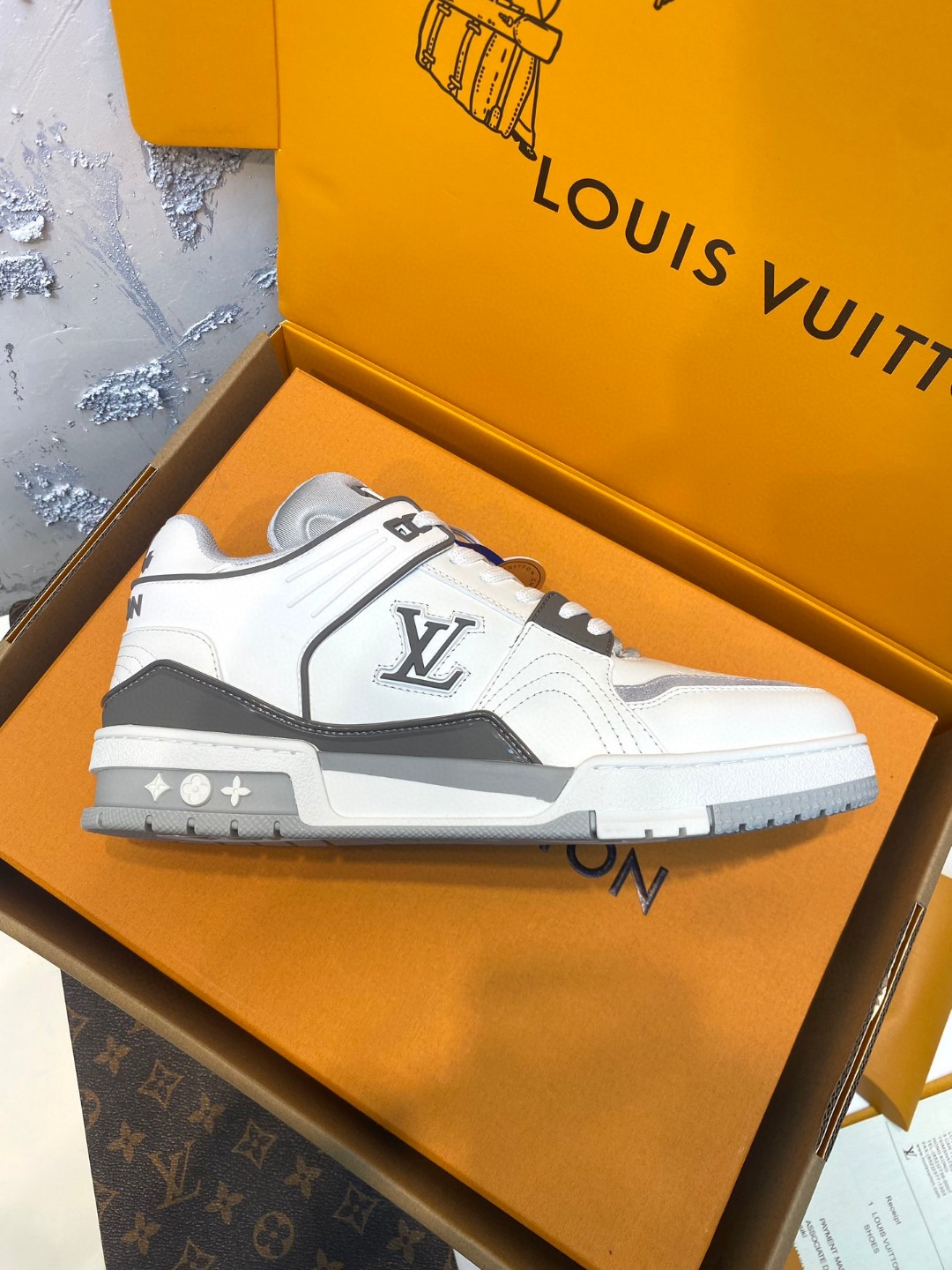 Louis Vuitton Trainer Sneakers Special Edition grey white