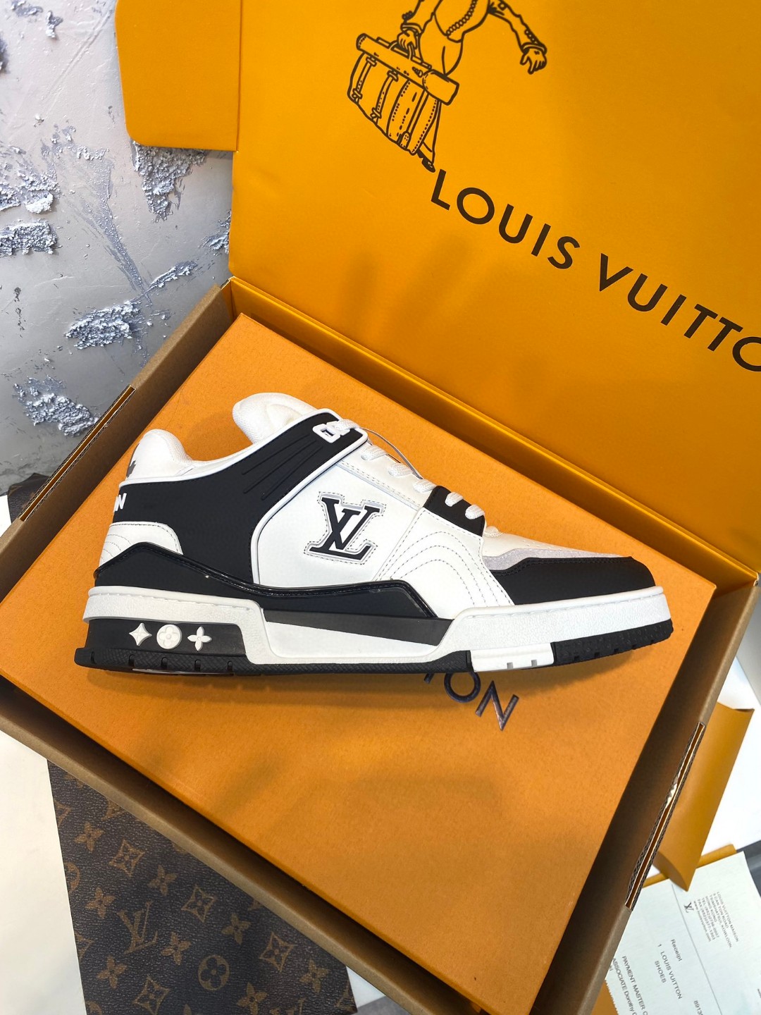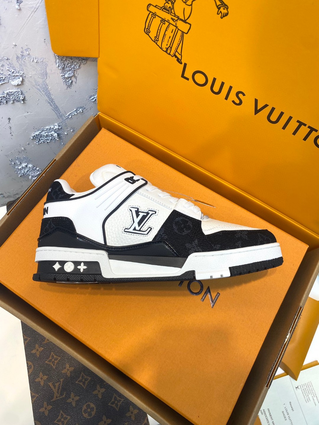 Louis Vuitton Trainer Sneakers Special Edition black white