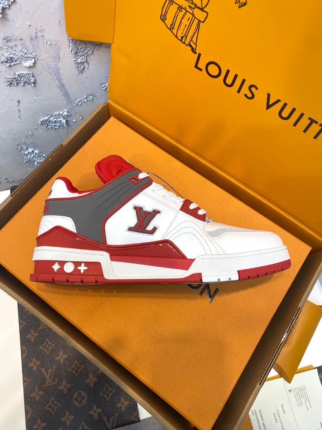 Louis Vuitton Trainer Sneakers Special Edition red white grey