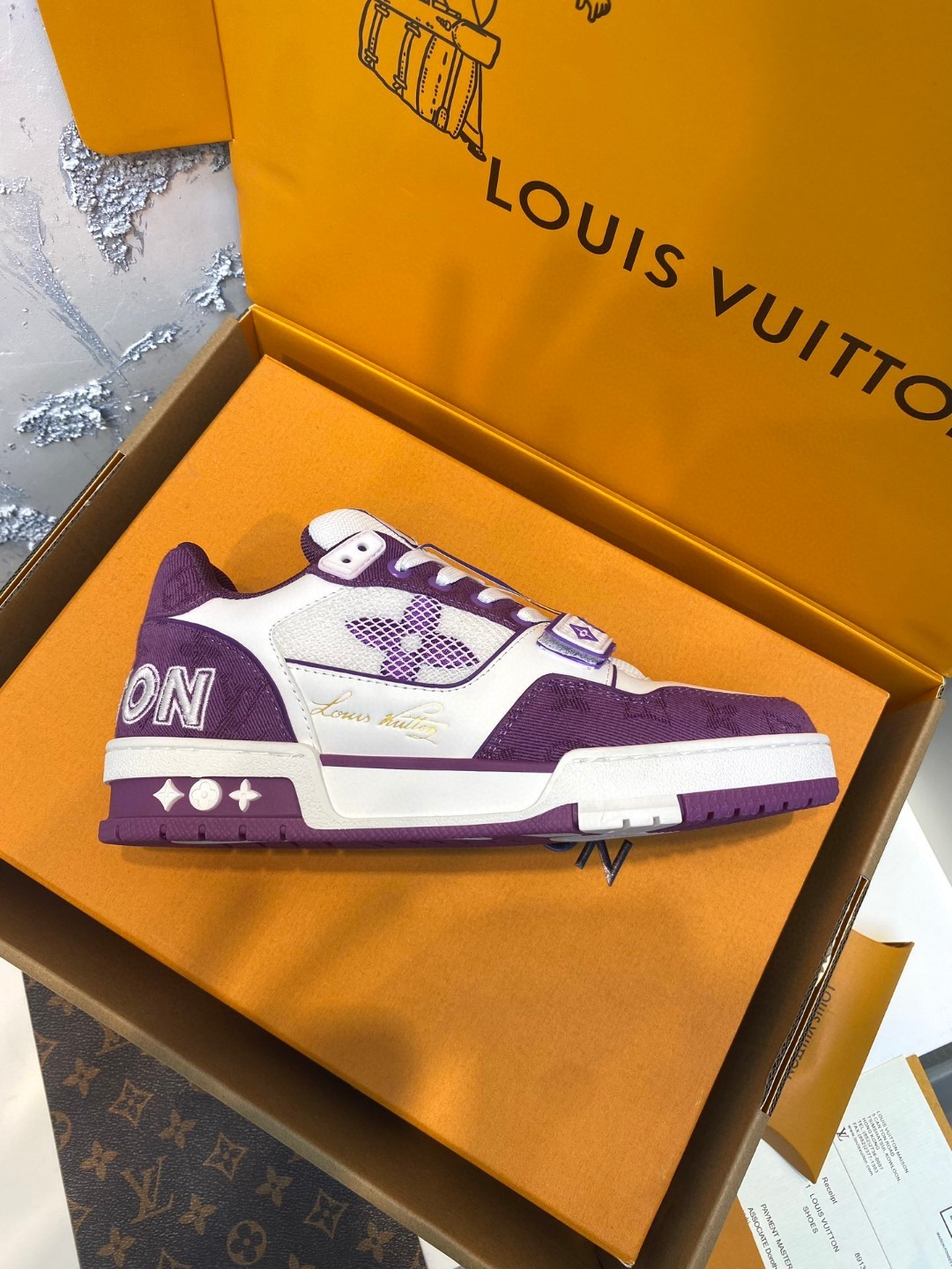 Louis Vuitton Trainer denim sneakers white purple