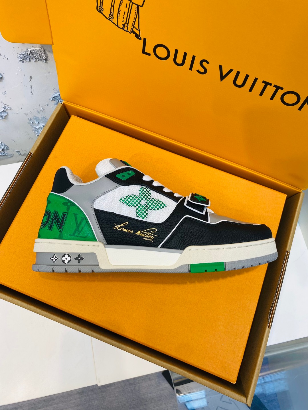 Louis Vuitton Trainer leather sneakers black green white