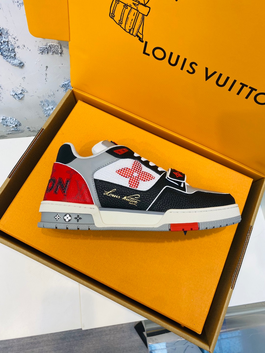 Louis Vuitton Trainer leather sneakers black red white