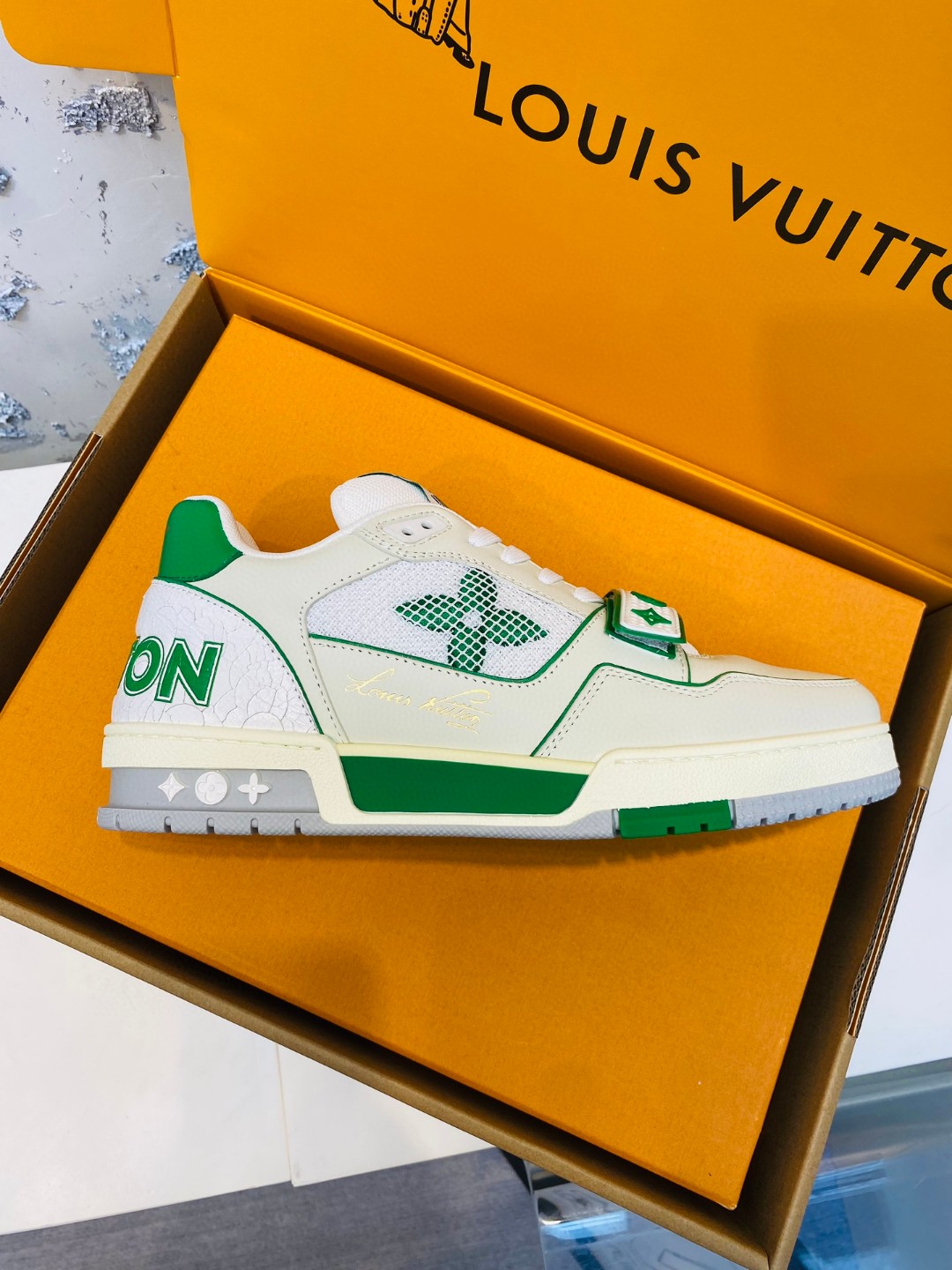 Louis Vuitton Trainer leather sneakers white green