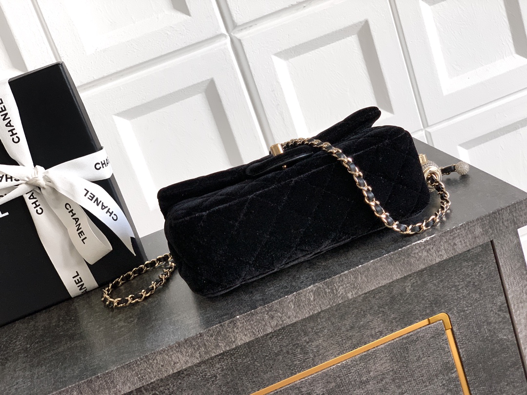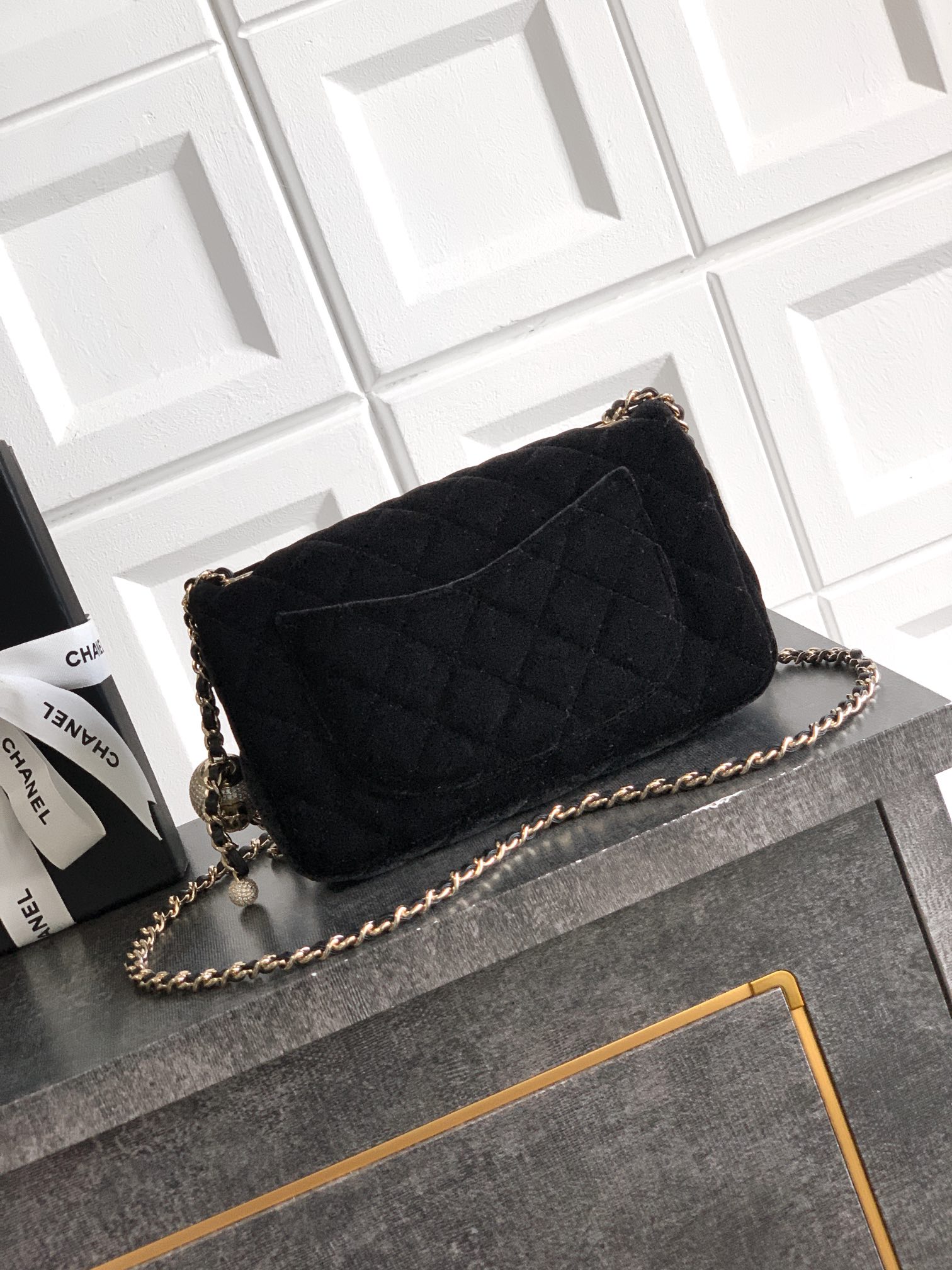 Chanel CF 25B velvet Ball chain bag Rectangular Mini Black