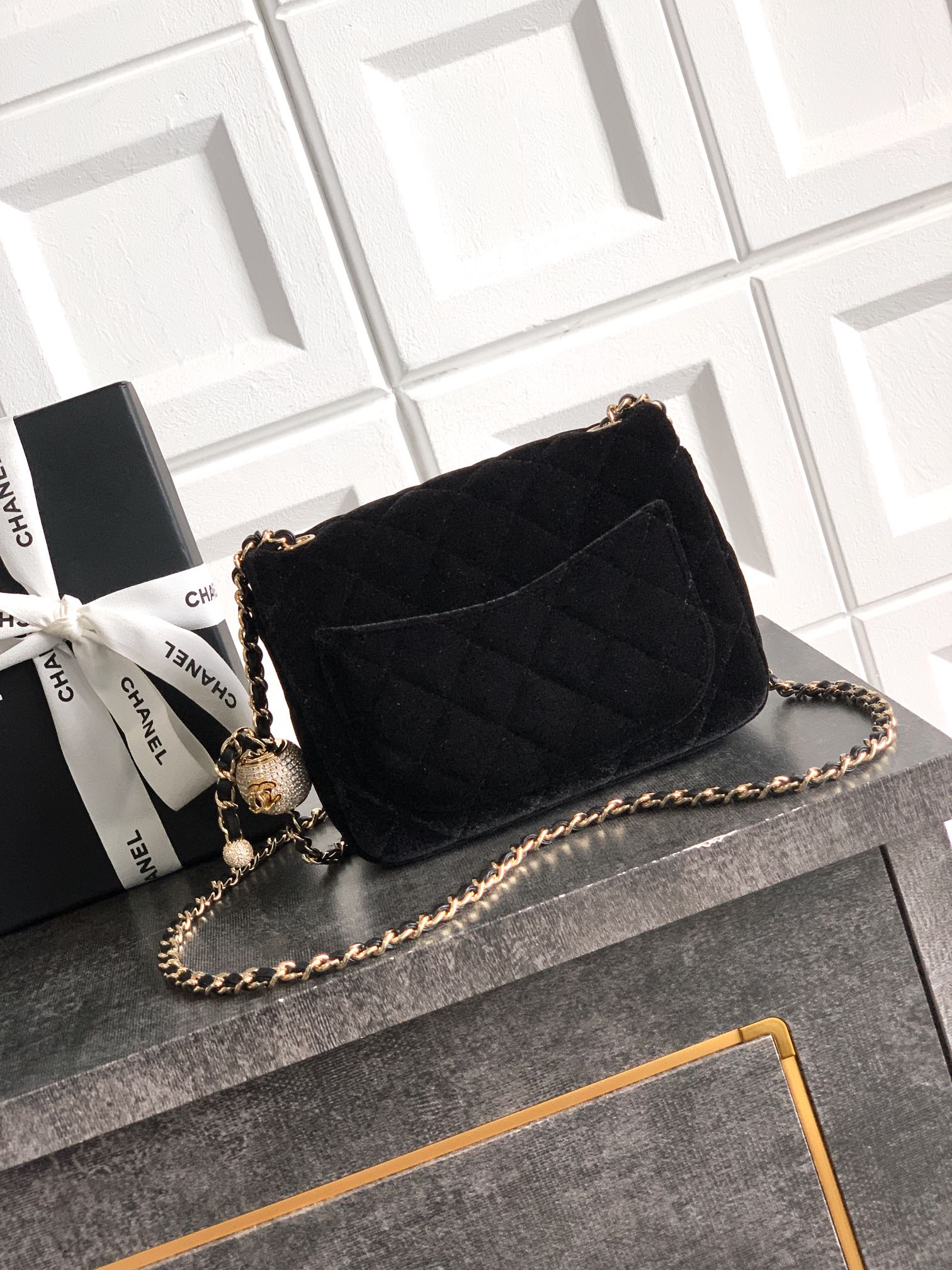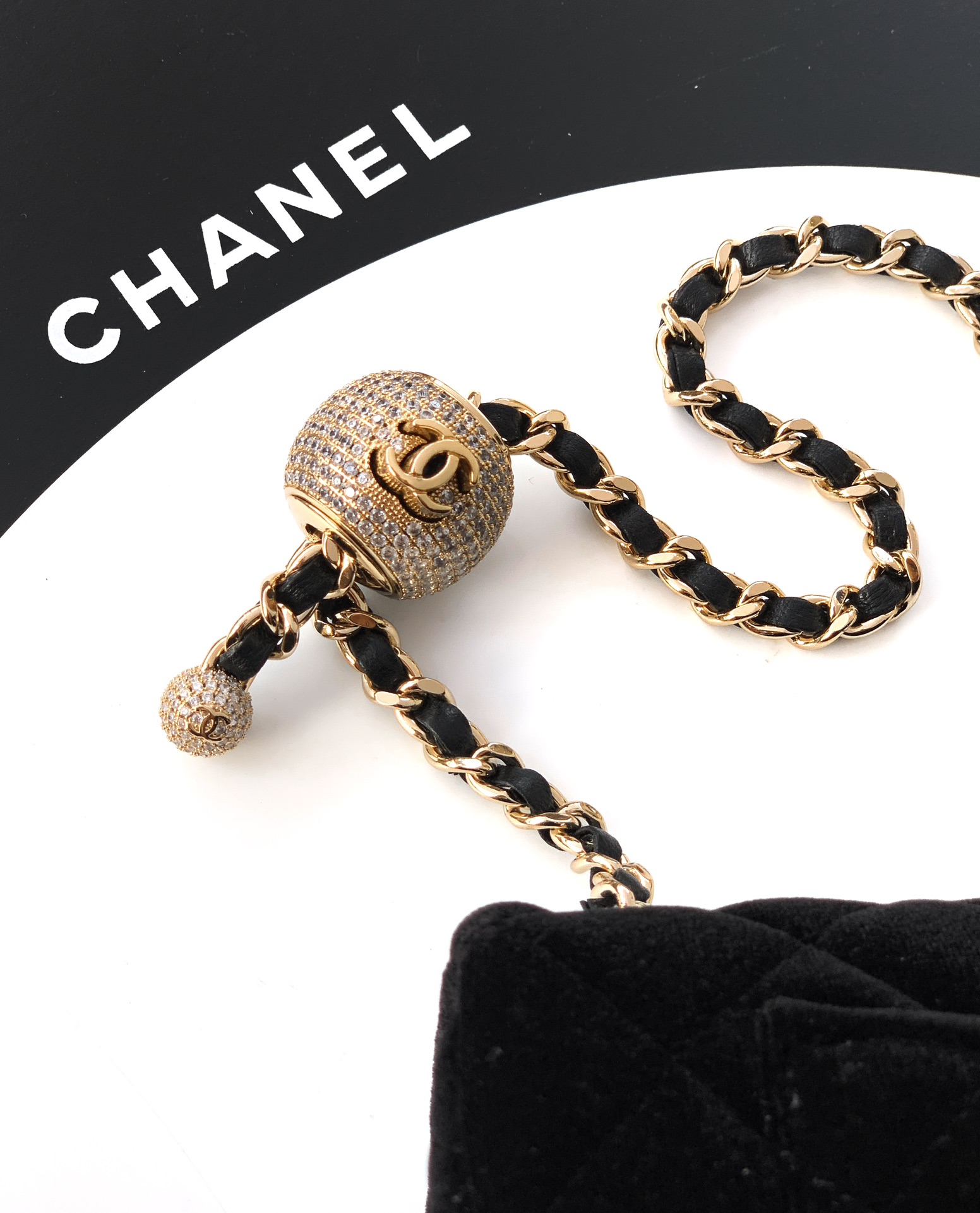 Chanel CF 25B velvet Ball chain bag Square Mini Black
