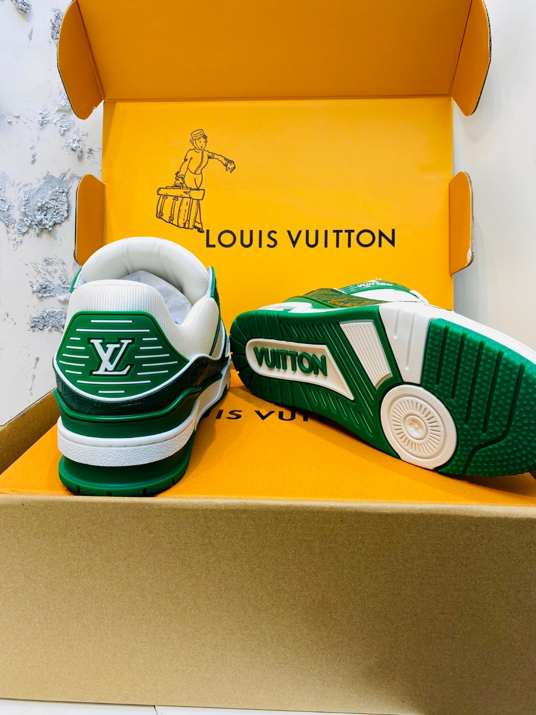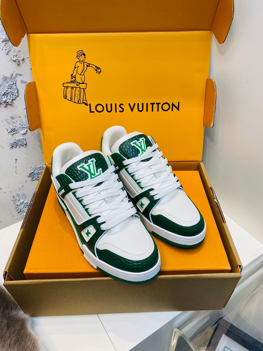 Louis Vuitton X Tyler Trainer stone pattern sneakers white green